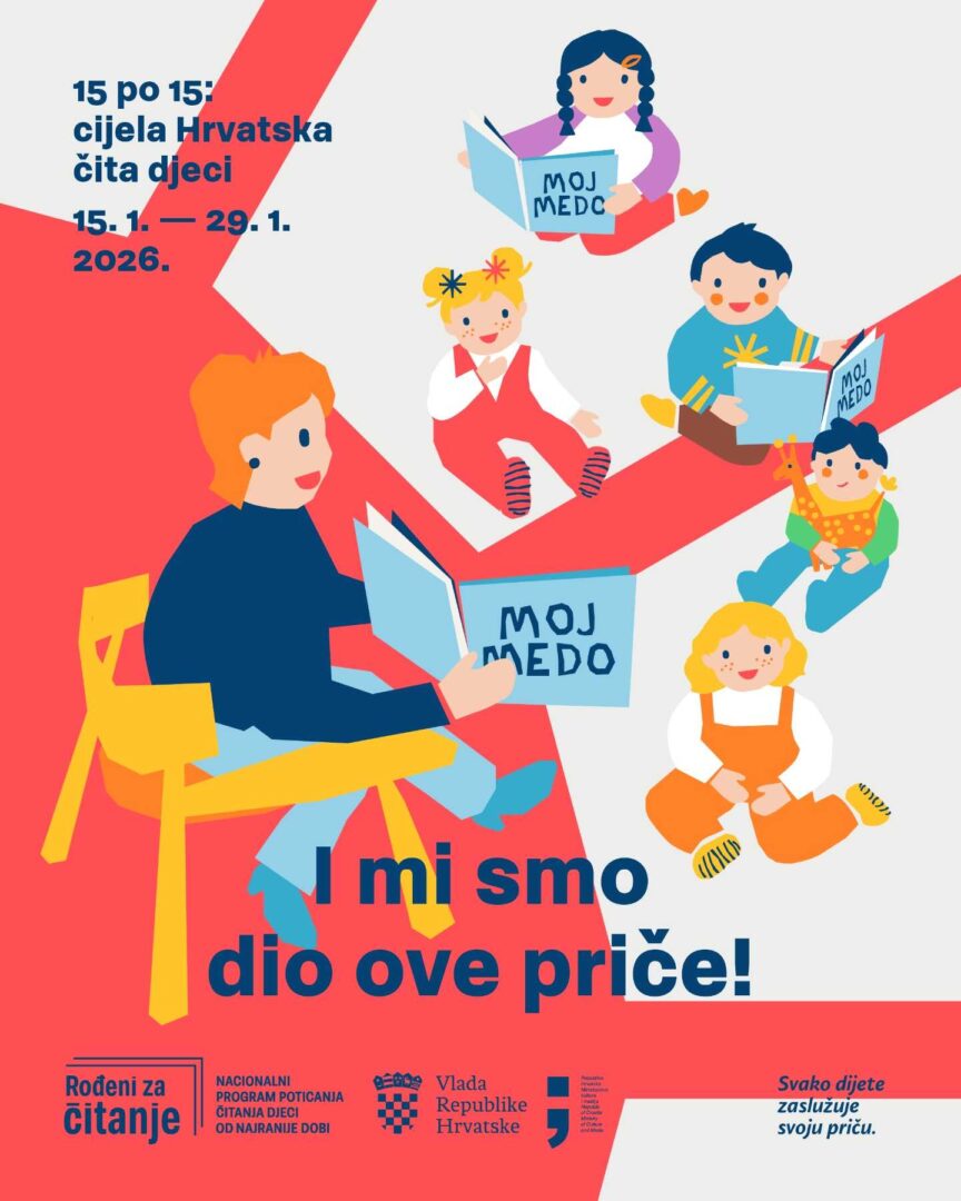 Nacionalni čitalački izazov „15 po 15: cijela Hrvatska čita djeci“ kampanja je koja poziva roditelje, skrbnike, vrtiće, knjižnice i sve odrasle koji se brinu o djeci da 15 dana zaredom čitaju djeci 15 minuta. Izazov započinje 15. siječnja 2026. godine, a cilj mu je potaknuti stvaranje trajne navike zajedničkog čitanja u obiteljima diljem Hrvatske.