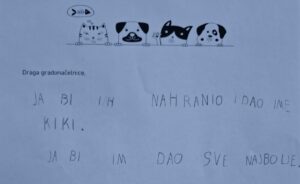 Od srca pohvaljujemo učenike 2. a razreda koji razumiju da i životinje imaju osjećaje baš kao i mi, a ujedno i za navođenje zaista dobrih ideja za pomoć napuštenim, ozlijeđenim i bolesnim životinjama na našim ulicama u svojim pismima gradonačelnici.